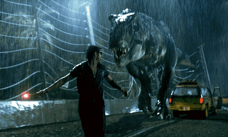 I’m glad you pointed out the cast. It is a large part of why this film still holds up. I like the opposites attract of Sam Neill’s jaded scientist and Laura Dern’s more eager optimist. And then you get Jeff Goldblum’s sarcastic mathematician who just about steals every scene he’s in. I think my fave scene might still be that bit where he chastises Hammond for messing with evolution: “our scientists were so preoccupied with whether or not they could, they didn’t stop to think if they should.” Sobering thoughts indeed and nice break between chase sequences.