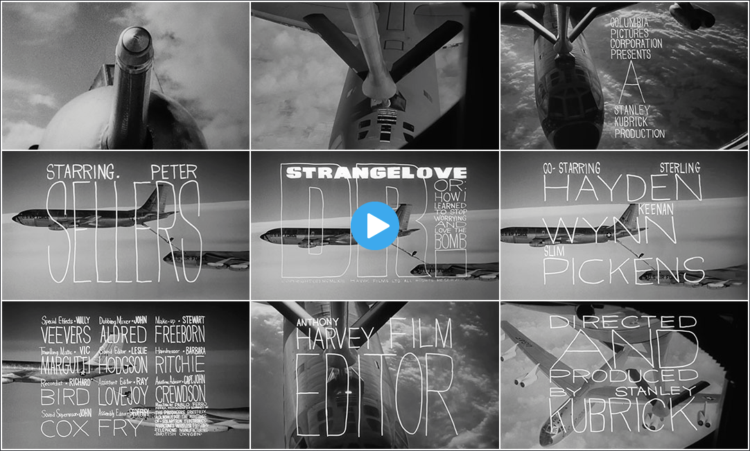 The good folks over at The Art of the Title site provides another stellar look at one of the all-time best opening title sequences. “The title sequence to Stanley Kubrick’s Dr. Strangelove, featuring aircraft refueling mid-flight and the hand lettering of title designer Pablo Ferro, is an undeniable classic of the art form.”: