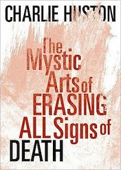 the mystic arts of erasing all signs of death 1Author Charlie Huston doesn’t seem capable of writing quiet or cautious fiction. Surprising would be the word I’d use when it comes to experiencing or explaining his work (and it’s a highly recommended one at that by my book blogger friends). Sick, and not for the squeamish, could well be on the warning label for his book covers, if publishers did that sort of thing. Hysterically funny should certainly be listed there, too.