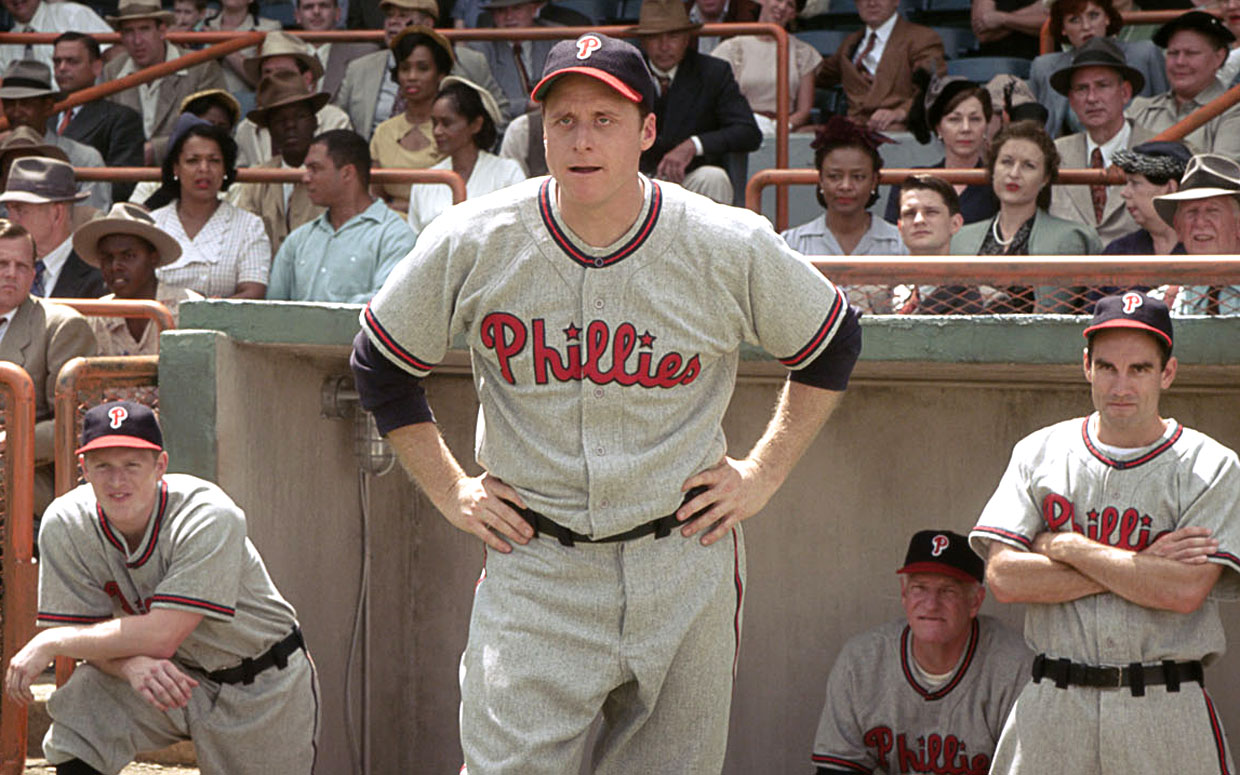 Bar none, it’s Alan Tudyk‘s performance as Phillies manager Ben Chapman in 42 (2013). His “unapologetic racist” spends most of his time on screen screaming obscenities at Jackie Robinson, and it is the most chilling thing in a sports-related movie. The reason is we know this behavior is not relegated to the past or to just baseball. It’s still in the very midst of American lives. [while I’ll get off my soapbox, for now, I’m quite adamant for what I’ve expressed here]