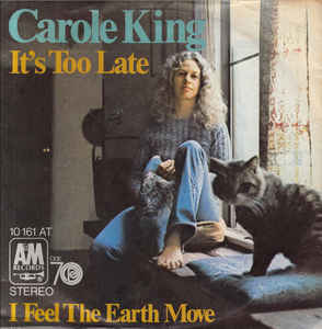 - It reached number 1 on the Billboard’s Hot 100 and Adult Contemporary charts. The album and single sold millions, and were later gold-certified by the RIAA. “Billboard ranked “It’s Too Late” and its fellow A-side, “I Feel the Earth Move“, as the No. 3 record for 1971.” ~ Wikipedia ↩