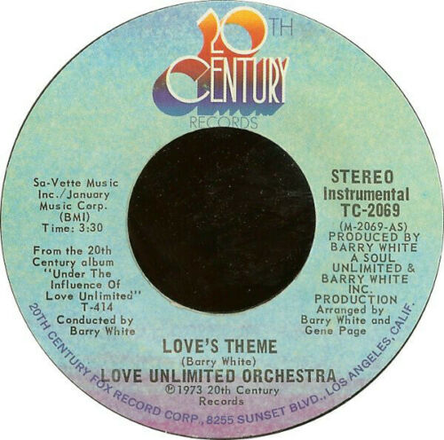 Love’s Theme– Like Theme From a Summer Place, this the rare purely orchestral instrumental that reached #1 on Billboard’s Hot 100. Its striking mix of rhythm and strings played off another signature effect that came into its own this decade, the wah-wah pedal. It recalled Percy Faith’s influential classic, but Barry White’s piece struck new ground and made the ’70s his own9 as it crossed Pop, Soul/R&B, and Adult Contemporary charts. It’s still great today.