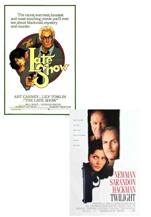 Guess I’ve grown in my tribute of screenwriters-turned-directors of late, which is why these two movies strike a chord with me. This would be because both The Late Show (1977) and Twilight (1998) are stellar treatises on the P.I.2 tale of popular fiction, and old age in particular. Specifically, old men, of who I’m now qualified to weigh on since I’m of that same maturity. My wife can verify this as she’s restricted me from climbing latters, or roofs for that matter, due to my accumulated birthdays.