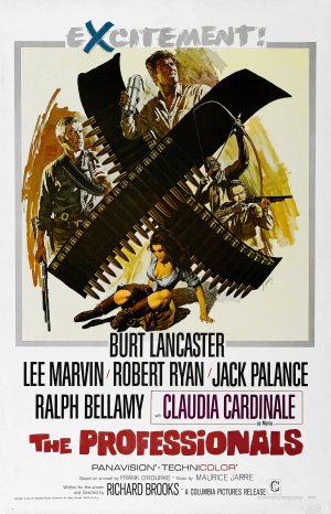 Just looking at the names on the poster for The Professionals, is like looking at a vision of my perfect film cast. What could be finer than watching Lee Marvin picking off guys with a pistol whilst hoisting a machine gun on his shoulders; Woody Strode calmly firing off a volley of arrows attached with lit dynamite; and Burt Lancaster being, well, Burt Lancaster, and not forgetting Jack Palance, who despite being shot multiple times still gets to ride off into the sunset with Claudia Cardinale.